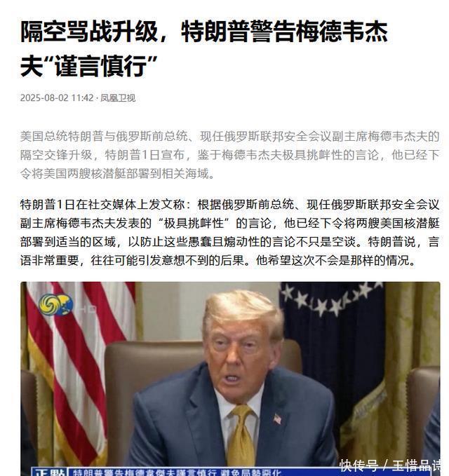 梅德韦杰夫没想到自己只是口嗨了一下特朗普,特朗普竟然真的出动了核潜艇,一边是俄乌战场的愈演愈烈,另一边又是美国的军事压力,普京俨然已经到了最危险的时刻。