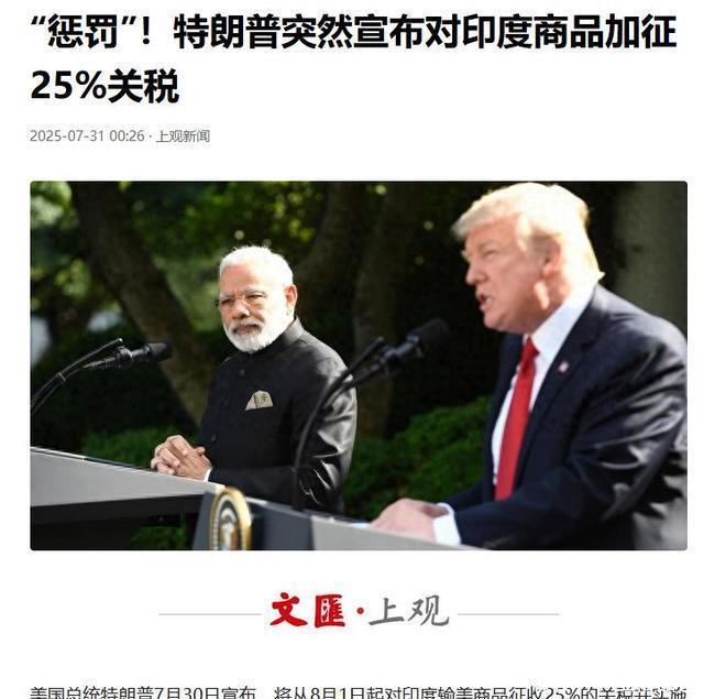 这就让特朗普对印度有着很大的不满,尤其自己几个月来一直想办法让普京停战,而莫迪反而一直不断加大印度与俄罗斯的石油贸易,给俄罗斯送钱来维系战争,让特朗普下不来台。 所以在近日,特朗普就宣布对印度加征了25%的关税,算是对印度的报复和惩罚。